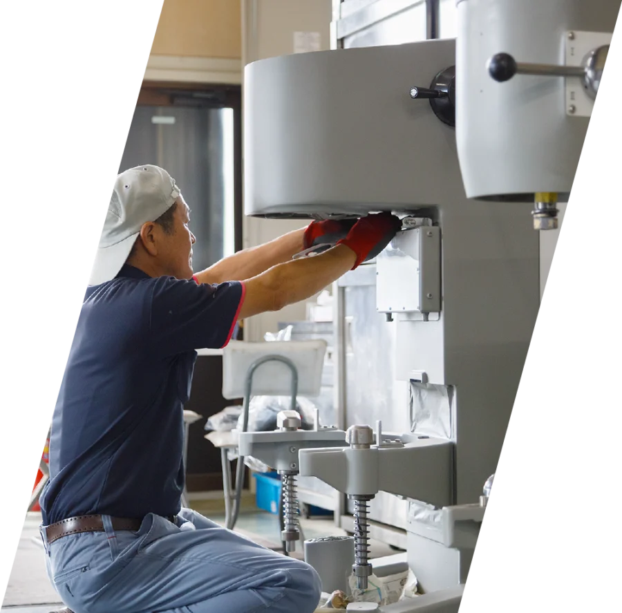 製パン・製菓設備の新品・中古機械の販売・修理にとどまらず、店舗設計から機種選定、運搬・設置までをワンストップでサポート。熟練のエンジニアによる再生中古機は新品同等の品質を誇り、不要機器の買取・委託販売にも対応します。